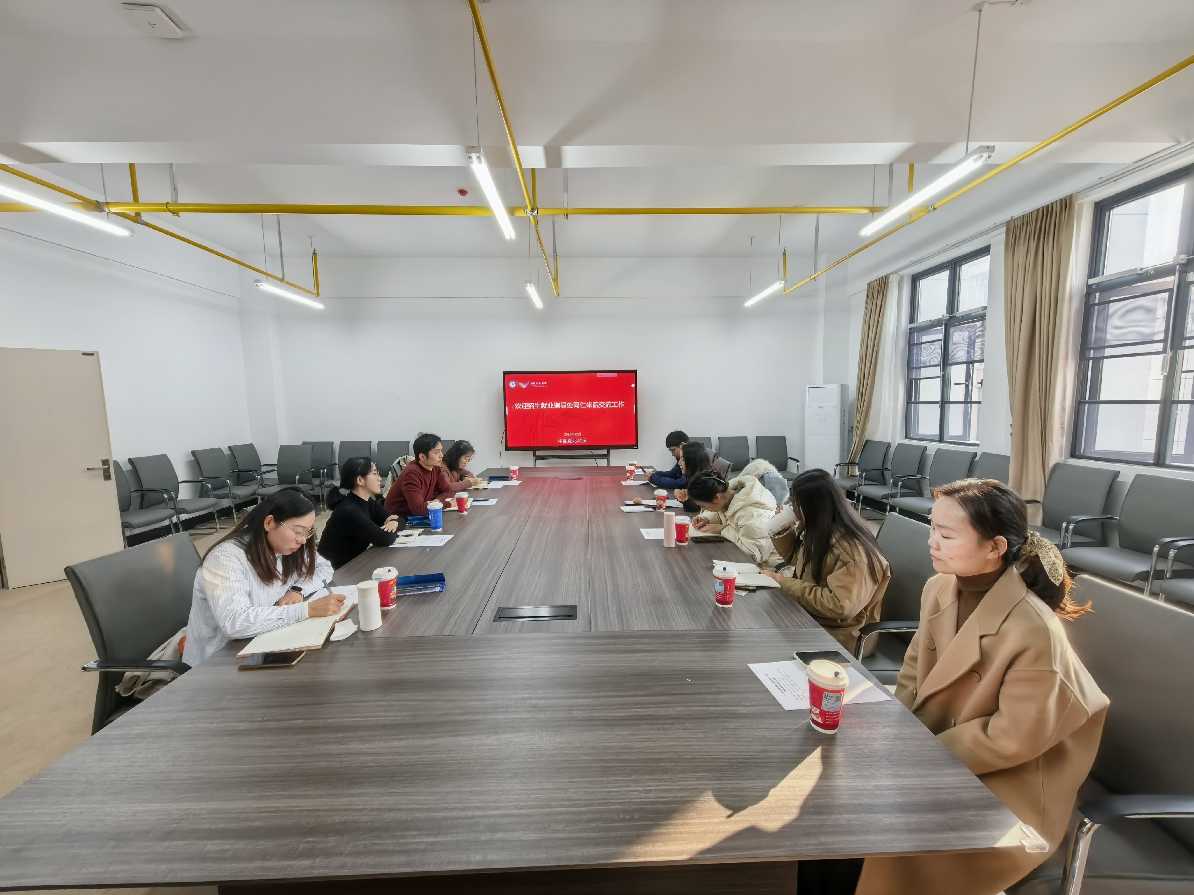 12月19日上午,招生与就业指导处副处长李俊杰、就业指导中心主任刘晶晶、老员工职业生涯规划教研室主任于姗姗、大...